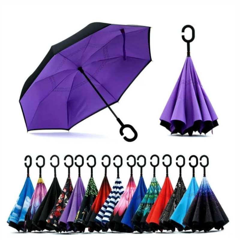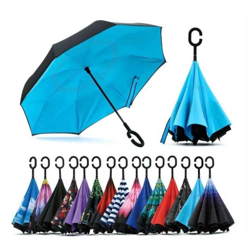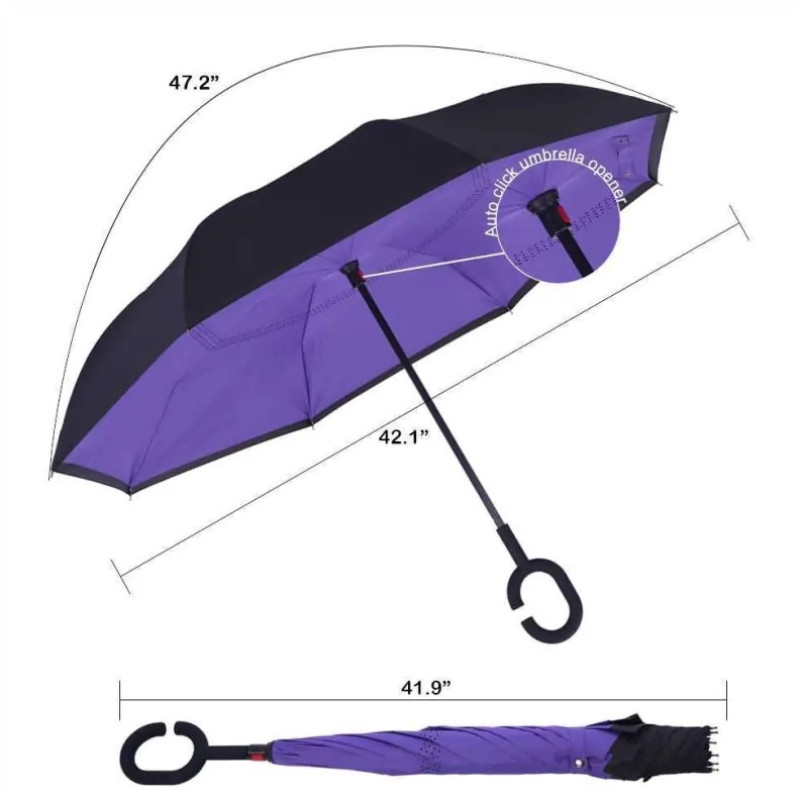 Reverse Umbrella with C-Shaped Hands Free Handle for Women and Men