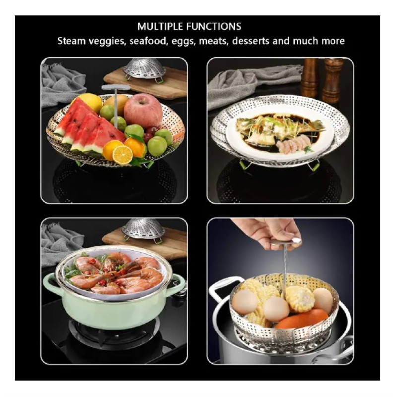 MULTIPLE FUNCTIONS & SATISFACTION GUARANTEE: The foldable steamer basket can be used to steam veggies, seafood, eggs, meats, desserts and much more.At the same time, the steamer can also be used as a fruit tray or filter. Because of its perfect packaging, it is also a gift of choice.If for any reason you don’t satistied it, just contact us to get refund or replacement.We guarantee you a satisfactory solution. Your satisfaction is our greatest pursuit. Why not experience it right away?