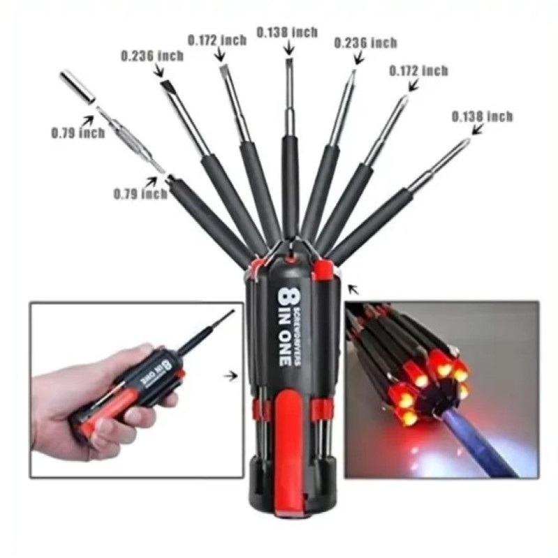 - 8In1 Multi-Functional Screwdriver Tool Kit Set with LED Torch are manufactured by using quality assured material and advanced techniques, which make them up to the standard in this highly challenging field.