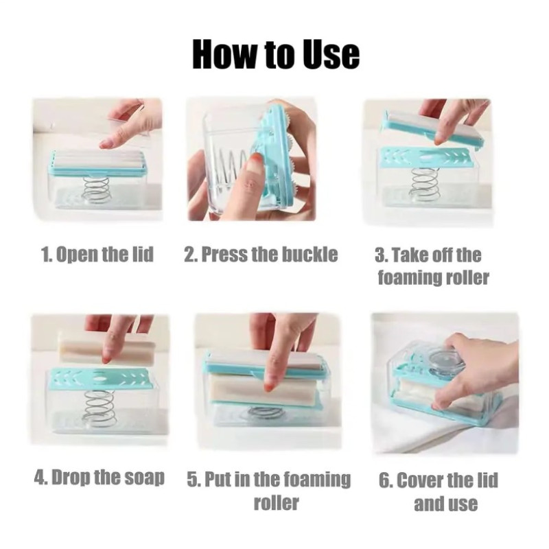 - 2 In 1 Washing And Storage In One, Fast Lathering. the Bottom Has Springs For Easy Access To Soap From The Box, And The Roller Grooves Are Raised For Easy Access.