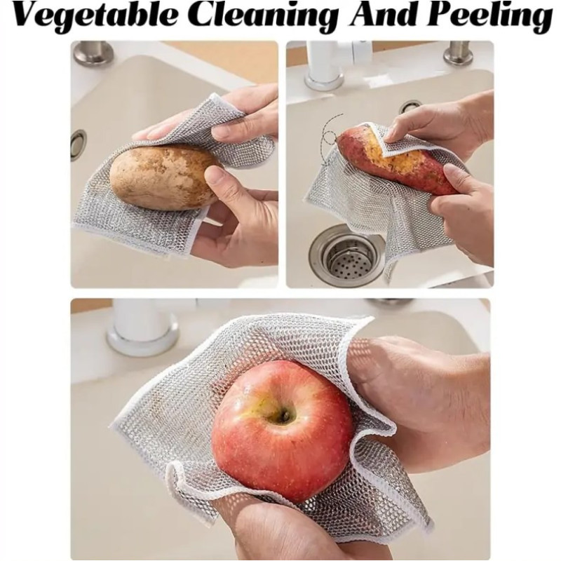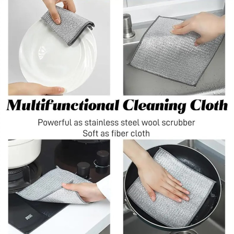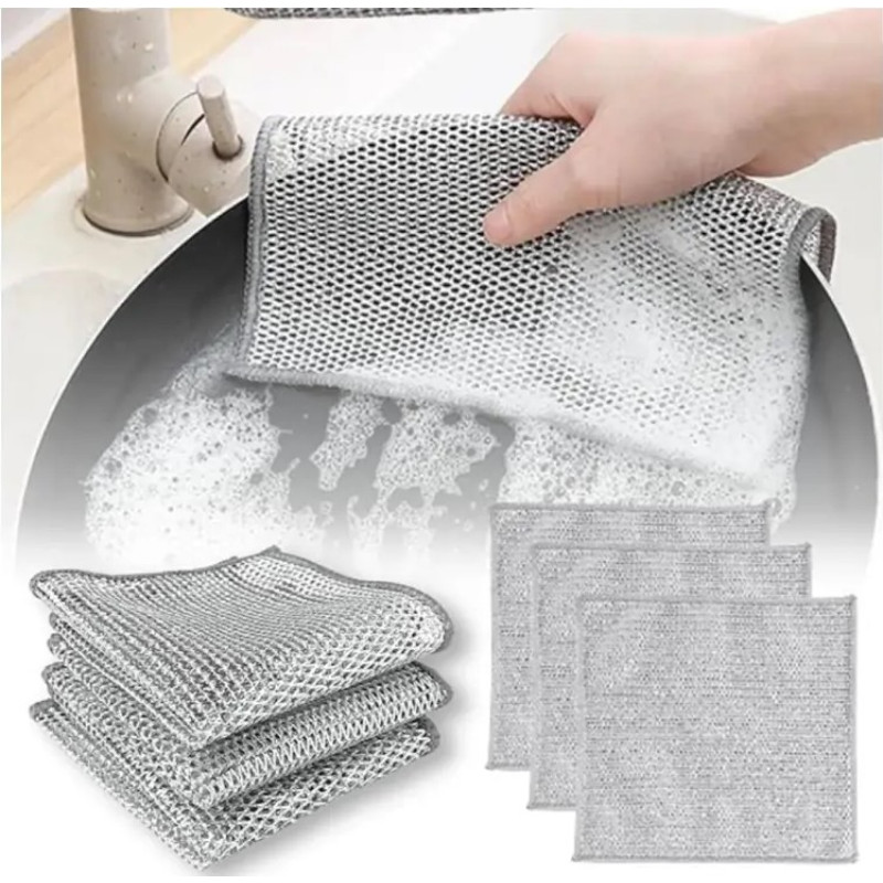 - The multipurpose wire dishwashing rags for wet and dry can be rinsed directly with water. Double stainless steel scrubber built to be used over and over without deteriorating or losing effectiveness.